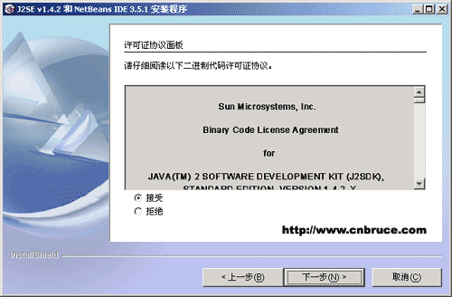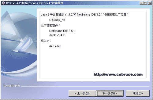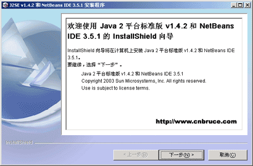 第一部分JAVA环境安装 1.目前J2SDK的最新版本是1.4.2_01,下载地址:http://java.sun.com/j2se/1.4.2/download.html DownloadNetBeansIDEv3.5.1withJ2SEv1.4.2COBUNDLE 采用包含了J2SEv1.4.2的NetBeansIDEv3.5.1 2.安装!我的每一步: 3.目录注意改下。“安