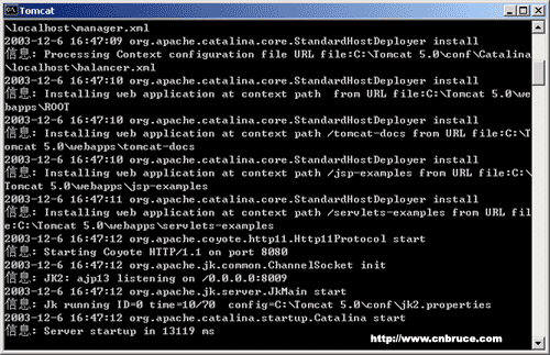 6. 假如有个dos窗口停留着没关闭,并有一些运行成功tomcat和初始化信息,证明tomcat运行成功。