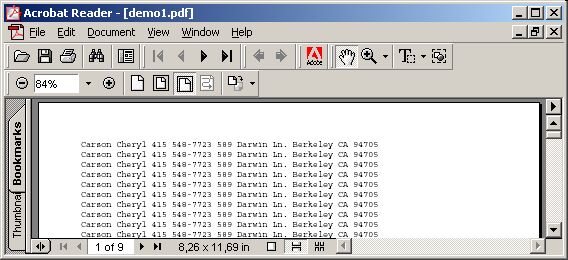 SQL2PDF makes a PDF report from text inserted in the table psopdf ( nvarchar(80) ). First a table named psopdf should be created.