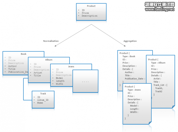 下图示意了这两种好处。图中描给了电子商务中的商品模型(陈皓注:我记得我在“挑战无处不在”一文中说到过电商中产品分类数据库设计的挑战)