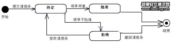 状态机图从某个物品的状态是如何变化的角度来展示流程,下图某请假条审批流程: