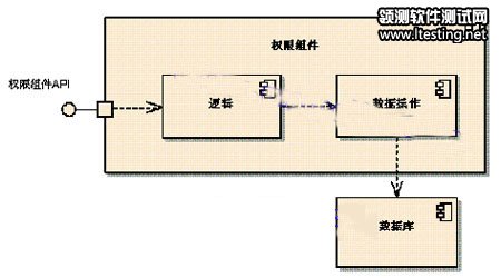 一辆汽车由轮子、发动机等物理部件组成,一个软件往往也是由很多“物理部件”(如:控件、重用构件等)组成的,构件图就是用来描述软件内部物理组成的一种图。下图是某权限构件设计图: