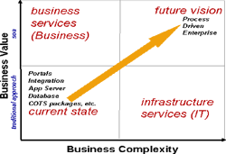 前景 抛开收益、成本和实现不谈,大多数企业和IT主管都同意下面的基本业务原则:他们的业务流程必须能够使他们与竞争者区分开来。对于一些企业来说,区分点是他们处理供应链的方式。而另一些企业则依赖于将新的革新性的产品推向市场的能力。
