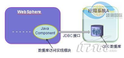 经过仔细的分析过后,Peter发现实现WebSphere平台对应用系统A的数据库的访问有两种实现方案可供选择: