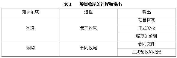 知识领域、过程和输出,它表明了项目收尾的主要内容。