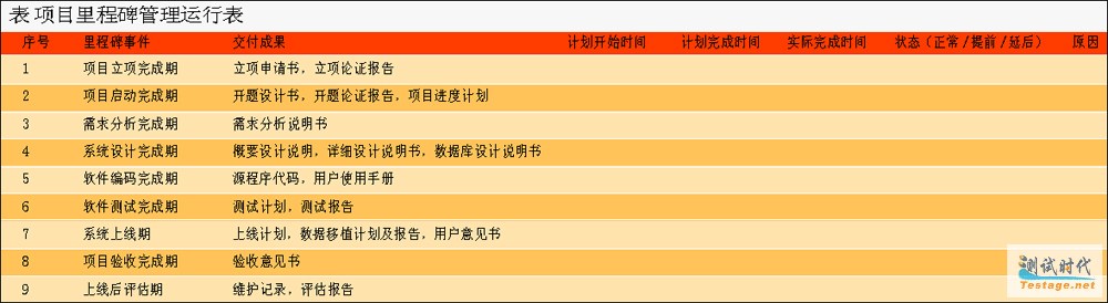 ● 制定项目里程碑管理运行表(里程碑管理表的主要内容见表1)。