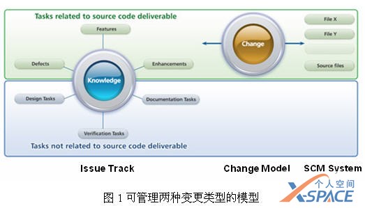 在软件开发过程中,变更主要体现为以下两种方式:第一类是不需要变更代码就能完成,如设计、测试和各种与文档相关的任务等;另外一类则与源代码相关的开发任务,包括新缺陷、新功能等。一个好的模型应该能实现对这两类变更的集中统一管理(如图1所示)。本节将分别就这两类变更,阐述这一新型的变更模型的管理策略。