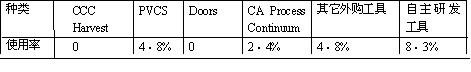 使用率最高的四种工具排序:MS Project 、Visual Source Safe、Rose、 ClearCase