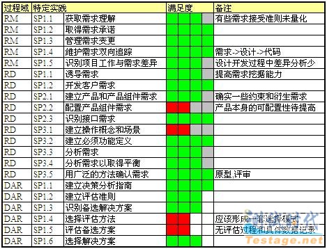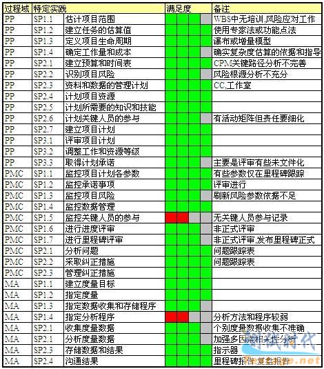 现在先列出项目的自我简单评估情况,主要列出项目经理关注的过程域: