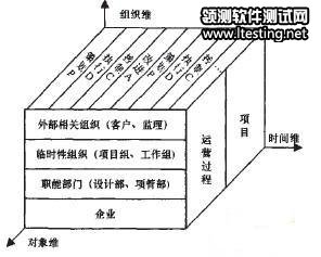 IS09000系列标准为企业建立质量体系提供了质量保证规定和实施原则。最新的IS09000质量标准(IS09000:2000),强调采用面向过程的方法,使其具有更广泛的适用范围。按ISO的定义,过程是接收输入并将其转化为输出的活动。质量管理系统需要识别并管理组织的内部过程,及这些过程问的相互关系。IS09000:2000建议每个过程都基于规划、执行、检查和改进(Plan.Do—Check—Act,PDCA)模式进行管理。若采用基于面向过程的方法,则质量管理的客体是企业所有内部过程。在现代企业中,过程包括2种类型:(1)连续不断、周而复始的运营过程,如人员考核、车间生产等;(2)项目是一种特殊的过程,它是在一定时间内,满足一系列特定目标的多项相关工作的总和。项目与运营过程不同,具有不可重复性、多目标性和临时性等特点,因此,项目的质量管理更复杂。当更多企业业务活动需要通过项目的形式来组织时,必须对企业范围内的所有项目实施有效的质量管理,并在质量系统中协调项目和运营过程质量管理的关系。运营过程、项目和质量管理的关系可以通过图1来描述。在时间维,定义了基于PDCA模式的过程执行和质量管理过程,PDCA的4个阶段循环执行,实现企业质量管理的持续改进;在对象维,定义了企业质量管理的客体对象,即项目和运营过程2种类型的过程;在组织维,定义企业质量管理的组织层次,包括企业、职能部门、临时性组织和外部相关组织等企业质量管理的主体。项目作为企业质量管理的客体对象之一,其主体包括企业领导、职能部门、项目组和客户等,其过程参照PDCA模式执行。