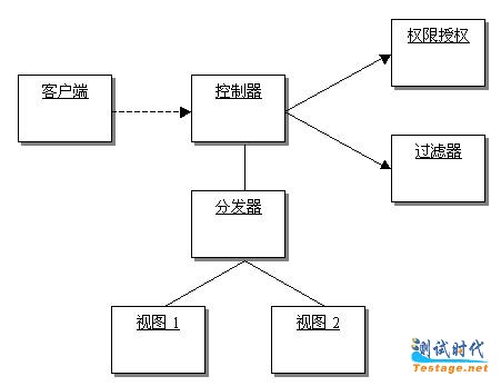 表示层的权限处理比较简单,我们可以从前端控制器中增加权限控制的模块。同时,为了解决合法性判断问题,我们又增加了一个数据过滤链模块,来完成数据的合法性判断和转换的工作。为了不使得控制器部分的功能过于复杂,我们把原先属于控制器的视图分发功能转移到新的分发器模块,而控制器专门负责用户请求、视图的控制。