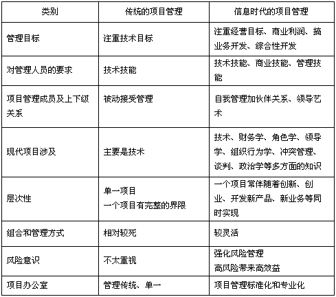 与传统的项目管理相比,信息时代的项目管理具有以下特点: