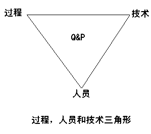 企业的Q&P依赖于三个因素:过程、人员和技术。三者的关系又称为质量三角,可表示为图1。质量三角与过程-技术-领导三角相似,也成为铁三角。