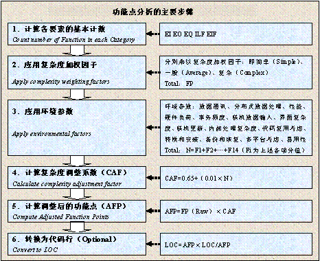 功能点分析法(FPA:function point analysis)是在需求分析阶段基于系统功能的一种规模估算方法,是基于应用软件的外部、内部特性以及软件性能的一种间接的规模测量。FPA法由IBM的工程师艾伦·艾尔布策(Allan Albrech)于20世纪70年代提出,随后被国际功能点用户协会(IFPUG:The International Function Point Users' Group)提出的IFPUG方法继承,从系统的复杂性和系统的特性这两个角度来度量系统的规模,其特征是:“在外部式样确定的情况下可以度量系统的规模”,“可以对从用户角度把握的系统规模进行度量”。功能点可以用于“需求文档”、“设计文档”、“源代码”、“测试用例”度量,根据具体方法和编程语言的不同,功能点可以转换为代码行。经由ISO组织已经有多种功能点估算方法成为国际标准,如:①加拿大人艾伦·艾布恩(Alain Abran)等人提出的全面功能点法(full function points);②英国软件度量协会(UKSMA:United Kingdom Software Metrics Association)提出的IFPUG 功能点法(IFPUG function points);③英国软件度量协会提出的Mark II FPA功能点法(Mark II function points);④荷兰功能点用户协会(NEFPUG:Netherlands Function Point Users Group)提出的NESMA 功能点法,以及软件度量共同协会(COSMIC:the COmmon Software Metrics Consortium)提出的COSMIC-FFP方法,这些方法都属于艾尔布策功能点方法的发展和细化。