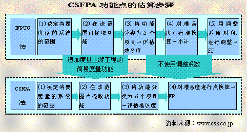CSFPA法与IFPUG法的估算步骤有所不同,二者的相似点以及不同点请参照图5-7。