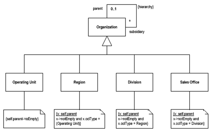 该图中也是来自于分析模式一书。不同的部门有着差异点和共性,将共性提取到父类中是继承的基本概念。这时候我们可以把父类看作是较低的层次,而把子类看作是较高的层次。对于一组层次结构很深的类来说,也可以从某一个水平线上分离层次。