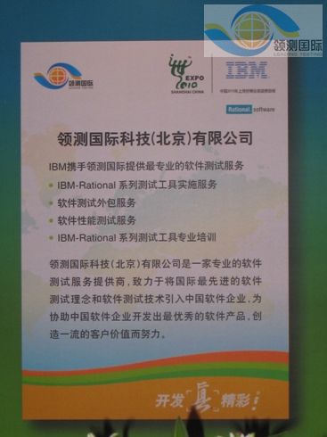 在大会现场,领测国际科技(北京)有限公司通过IBM提供的宣传展台,向与会者介绍领测国际的专业软件测试服务解决方案
