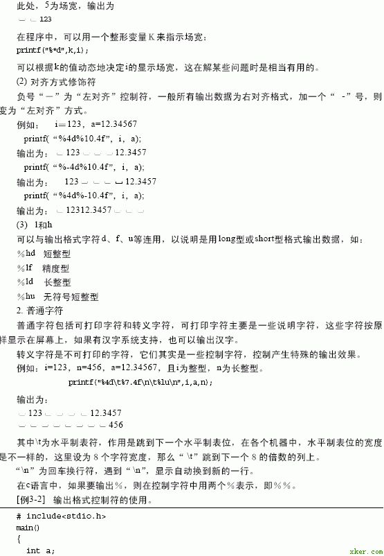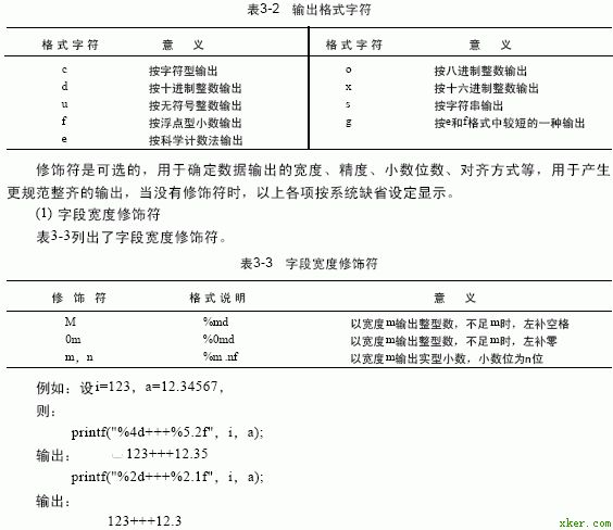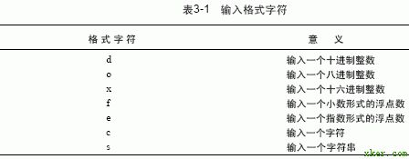 各个格式字符及其意义见表3 - 1。