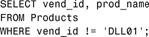 注意:是!=还是<>? !=和<>通常可以互换使用。但是,并非所有DBMS都支持这两种不等于操作符。例如,Microsoft Access支持<>而不支持!=。如果有疑问,请参阅相应的DBMS文档。