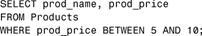 下面的例子说明如何使用BETWEEN操作符,它检索价格在5美元和10美元之间的所有产品: