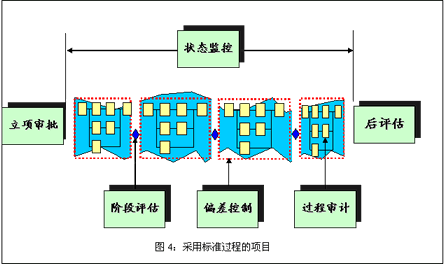 - 偏差控制,在一般情况下,要求每个项目提交模板统一的项目周报,或直接在项目管理系统中提交周报,再结合项目初期的数据,从财务系统中得到项目的成本信息。可以获得项目的进度偏差、成本偏差,也就是根据项目管理中著名的“挣值分析三条曲线”来监控项目的偏差。