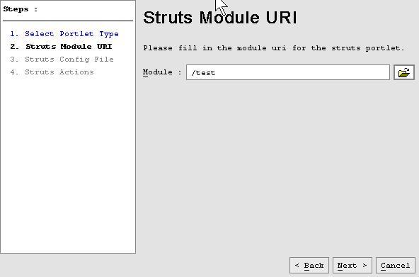 为Struts选择Module URI,本例中选择test目录,即生成的portlet放在test目录下.