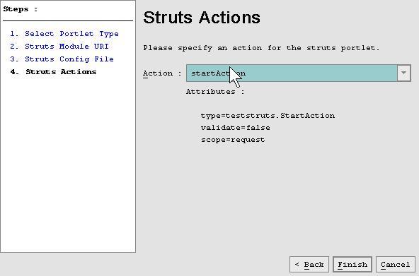 注意:要为Struts生成portlet,Struts里的必须以Action作为入口,不能以JSP作为其入口.