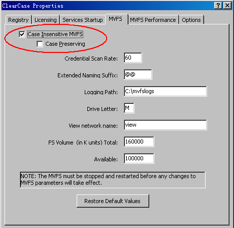 uRo.Q"_*JS6nZ软件测试技术门户y7Loh1fC可以通过设置来改变case sensitive 的mode。打开控制面板--〉ClearCase--〉MVFS中,这里可以设置mode。