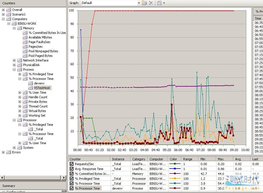 压力测试运行后,我们就可以选中某个参数,查看某个时刻机器个方面的性能。参看下图: