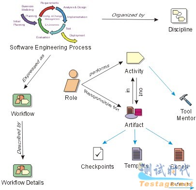 RUP把整个软件开发过程分解成:业务建模、需求管理、分析设计、实施、测试、部署、配置与变更管理、项目管理和环境等九个核心工作规程。每个核心工作规程由多个详细工作流程组成。基于人类对软件工作过程最原始的感受,RUP使用角色、活动和作为输入输出的工件来组织每个详细工作流程,实现软件开发组织内部人、资源和流程的融合。RUP通过建立完整的软件开发过程,使得产品的质量由项目团队的每个成员共同负责,具体体现在: