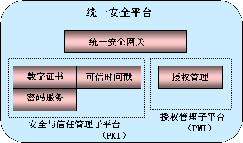 统一安全平台的功能是统一安全应用网关、安全信任管理子平台、授权访问子平台等三个平台软件功能的组合。