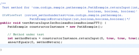 下例中显示了这种问题。此处,returnInput()方法由七条语句组成,它有一个简单的需求:输出应等于输入。