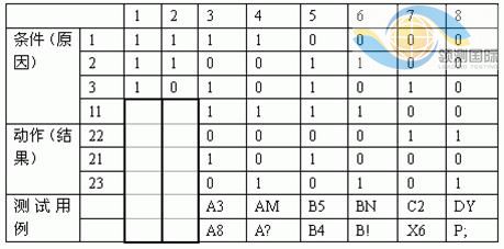 表中8种情况的左面两列情况中,原因①和原因②同时为1,这是不可能出现的,故应排除这两种情况。表的最下一栏给出了6种情况的测试用例,这是我们所需要的数据。