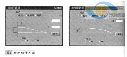 软件的基本功能是比较简单的,即定义梁拱的基本参数并保存。需选择长度单位(米或毫米);需选择梁拱形式(折线、抛物线和圆弧);当梁拱形式为折线时,需输入长L和高H的值,当梁拱形式为抛物线或圆弧时,需输入高H的值;保存所选择或填写的梁拱的参数。