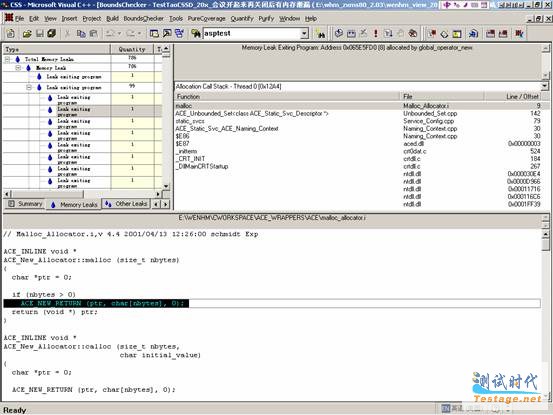 第二次内存泄漏检测运行CSS测试程序得到的检测报告发现的内存泄露全部集中在ACE/TAO(ACE的CORBA库)提供的dll上,原因可能有如下两种: