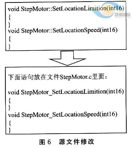 要用C编码,需要把C++代码稍作修改变成C代码。由于没有动态创建实体,所有的对象都是静态的。这使得修改工作极其简单——把“::”改成“_”即可。修改后的“_”前面的部分可以看成是对象名,后面的部分看成是成员函数名,源文件的修改如图6所示。