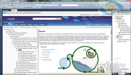 在Visual Studio 2010中,项目过程模板变化很大,微软把Scrum作为基本Agile开发模型(Scrum模型为基础参考导向),如图2所示。TFS2010中集成了 MSF for Agile Software Development v5.0,可操作性上又融合了敏捷等软件开发流程思想模型。