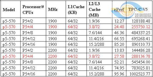 对照IBM服务器的处理能力表