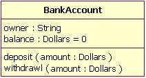 图 2:显示默认为0美元的balance属性值的银行账户类图。