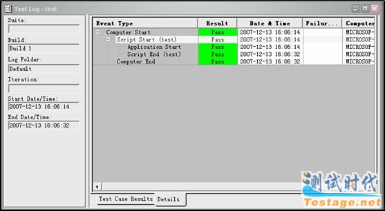 执行打开的脚本,选择菜单File->Compile可查看脚本是否有语法错误,在无语法错误的情况下选择菜单File->Playback可回放脚本,在回放脚本的过程中无需手动做操作,在执行完毕以后会有提示是否会执行成功,如下图: