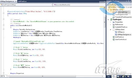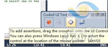 VSTS2010中的CodedUI Test支持自动化功能测试软件的录制回放功能,如果能把CodedUI Test与测试用例管理结合起来,然后再使用Lab Manager上的一些功能会有不错的效果。CodedUI Test工作区包括软件UI录制、事件记录和回放、软件组件属性捕捉和录制到的动作事件自动代码生成等功能。CodedUI Test自动化测试操作区,如图10所示。