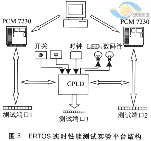 由于大多数ERTOS的内核是不可更改的,所以对其实时性能的测试主要在用户层实现。开发者可以将现有的用于测量Rhealstone性能指标和PDLT延迟时间的benchmark程序方便地移植到PCM 7230开发板与不同RTOS组合的平台上,也可以根据应用需要自己编写测试程序,对感兴趣的延迟时间进行测量。