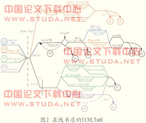 任务分布图是以一种直观的方式展示性能测试需求,描述一些交易任务在24小时内的交易情况,重点关注并发用户的数量以及典型的业务操作。如表1是某网上书店的任务分布图,从中可见:12:00~16:00的交易混合程度较高,“预定图书”任务的并发用户在14:00达到最大。