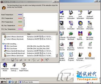 SiSoft发行的Sandra系列测试软件是Windows系统下的基准评测软件。此软件有超过三十种以上的测试项目,能够查看系统所有配件的信息,而且能够对部分配件(如CPU、内存、硬盘等)进行打分(benchmark),并且可以与其它型号硬件的得分进行对比。另外,该软件还有系统稳定性综合测试、性能调整向导等附加功能。
