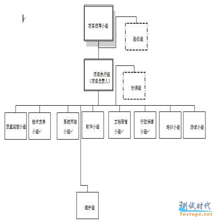 该小组也可根据项目的实际情况分成几个小组,分别负责应用软件、系统网络、文档管理、项目支持、质量监控、行政保障工作。