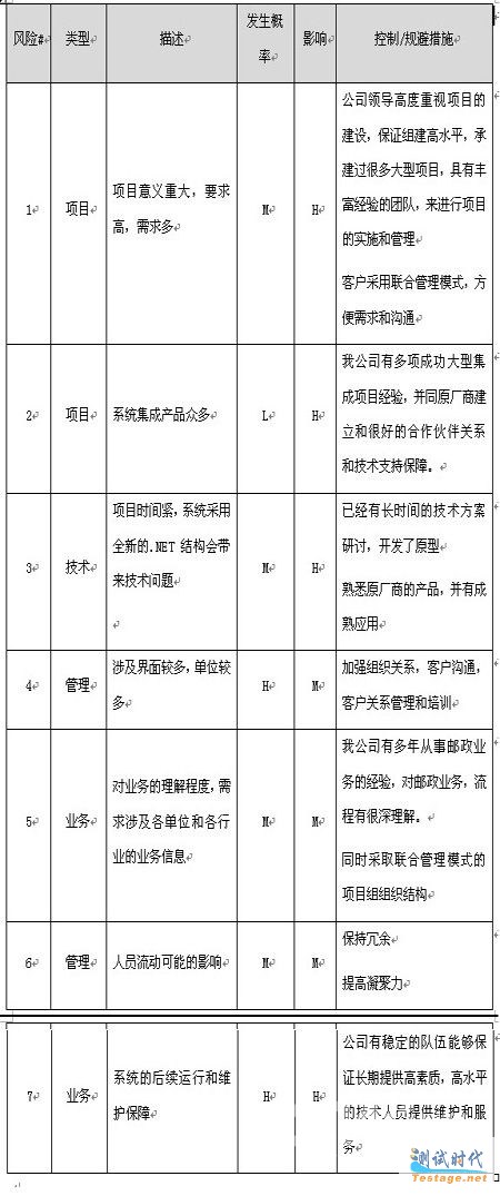 说明:发生概率及影响程度中,H-高 M-一般 L-低