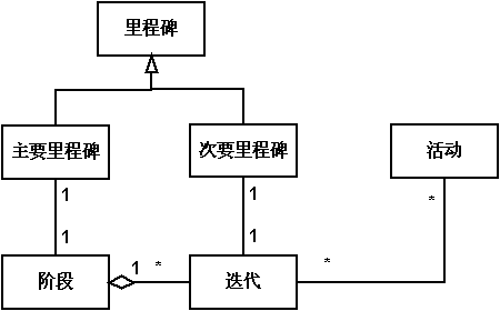 上图清晰的表达了上述分析的思想。里程碑分为主要里程碑和次要里程碑2种;阶段可以包含多次迭代;每个阶段必然有一个主要里程碑标识结束,每个迭代必然以一个次要里程碑标识结束。