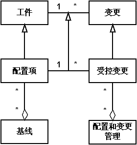 配置和变更管理完成建立并管理基线的任务。置于配置和变更管理之下的工件,称为配置项(configuration item)——因此下图把配置项建模为工件的子类。而基线就是有多个配置项组成的瞬时快照——因为受配置和变更管理控制是基线的必要条件。