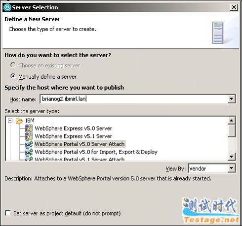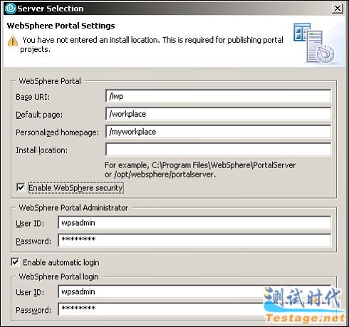 图 7. Server Selection 对话框 —— WebSphere Portal Setting 页面