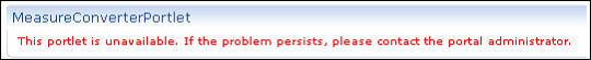 如果一切顺利,那么您应该看到错误消息:“This portlet is unavailable. If the problem persists, please contact the portal administrator”。参见图 8。